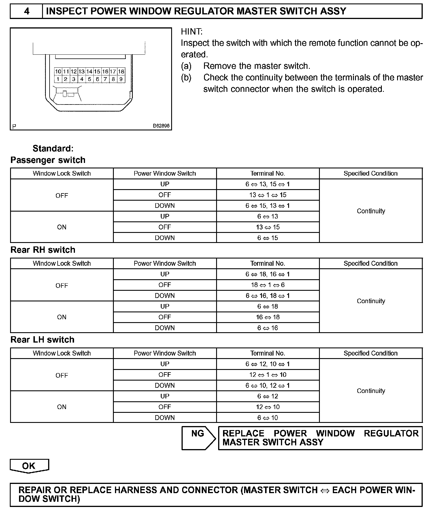 - There is an open or short circuit in the wiring between the power window master switch and the applicable power window switch.