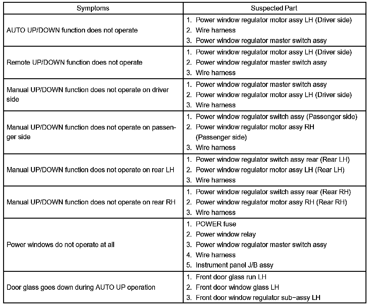 Problem Symptoms Table: