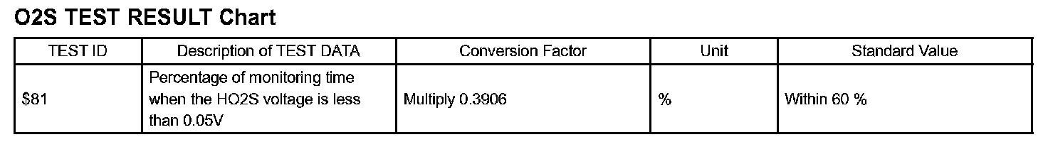 In this the description of the O2S TEST RESULT (for O2S related DTCs) are written in a table.