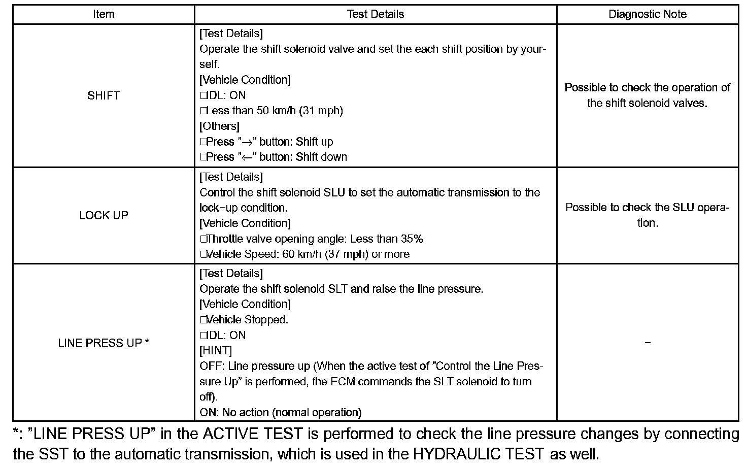 HINT: The pressure values in ACTIVE TEST and HYDRAULIC TEST are different from each other.