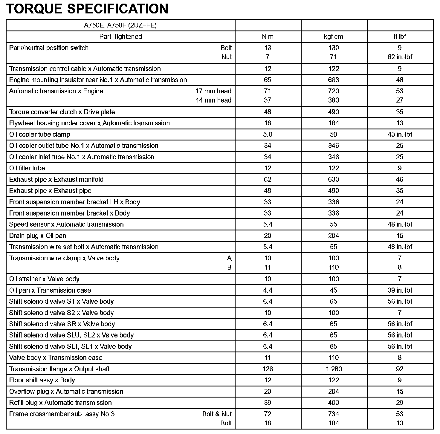 Automatic Transmission / Transaxle-Torque Specification: