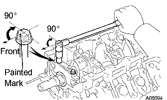 Retighten the cap bolts 90° as shown in the illustration.