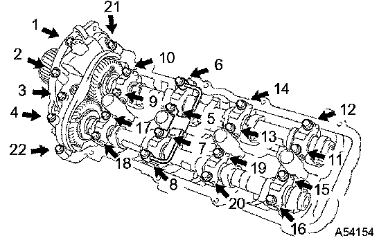 Uniformly tighten the 22 bearing cap bolts in several steps, in the order shown in the illustration.