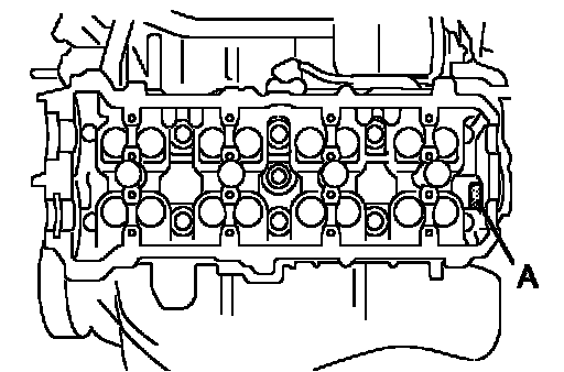 NOTICE: Do not drop the plate washer for the cylinder head bolt into portion A of the cylinder head. If dropped into portion A, the plate washer will pass through the cylinder head and cylinder block into the oil pan.