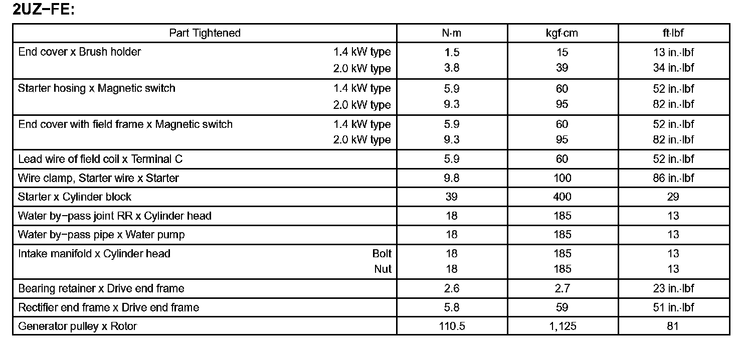 Starting & Charging-Torque Specification (Part 1):