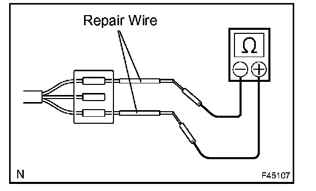 b. If it is impossible to check resistance from the back of the connector, use a repair wire to check it.
