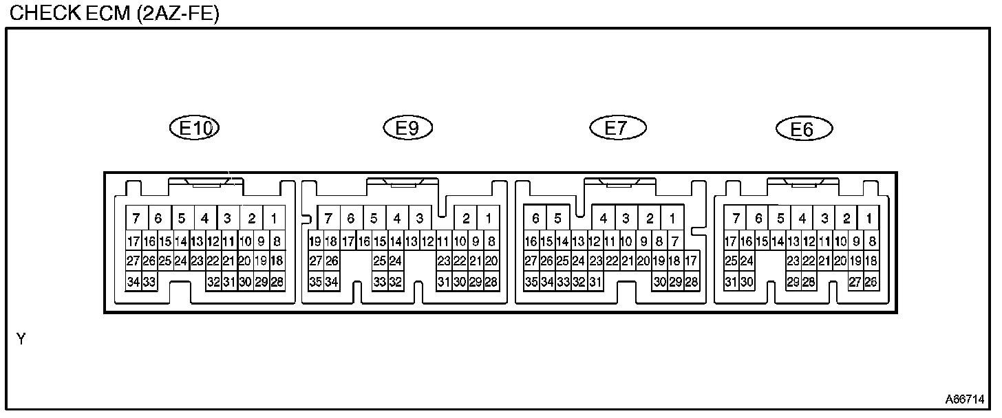 a. Disconnect the E7 and E10 ECM connectors, and check the voltage or continuity between each terminal of the wire harness side connectors.