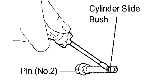 b. Install the cylinder slide bush to the bottom side of the front disc brake cylinder slide pin (No.2).