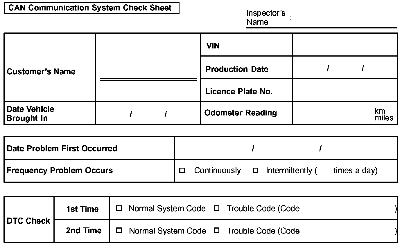 CAN Communication System Check Sheet: