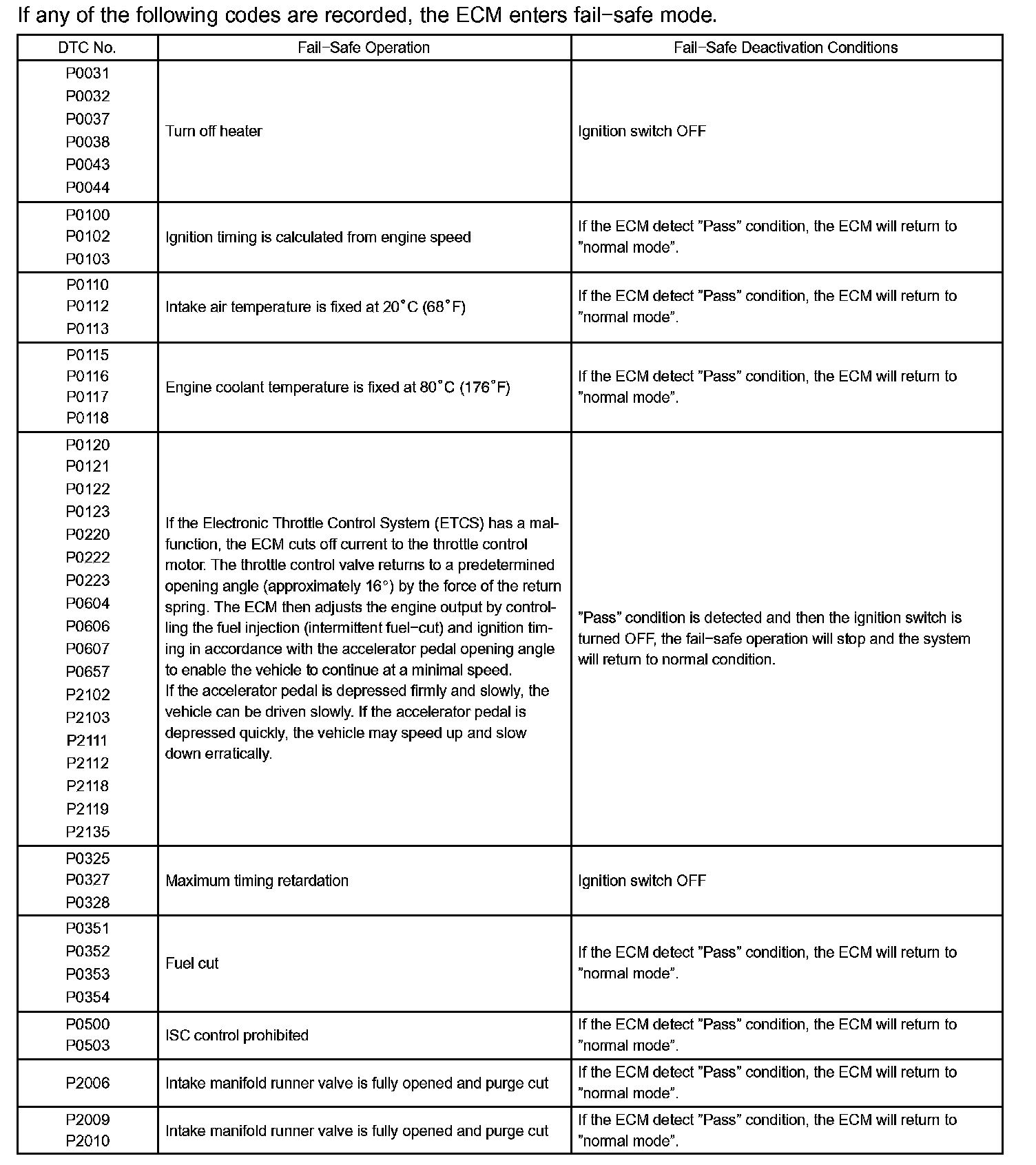 If any of the given codes are recorded, the ECM enters fail-safe mode.