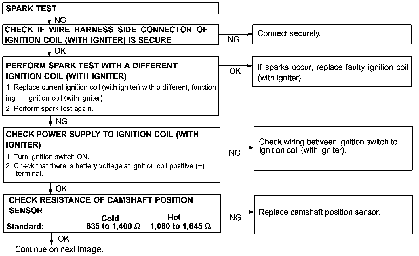 7. Check if sparks occur at each spark plug while the engine is being cranked.