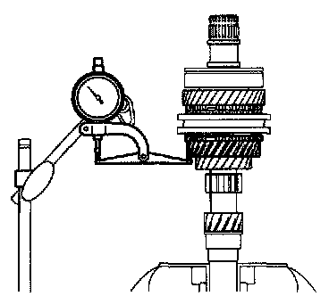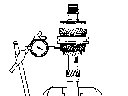 a. Using a dial indicator, measure the 3rd gear thrust clearance.