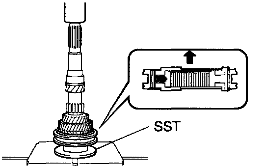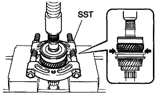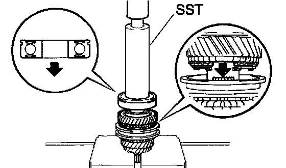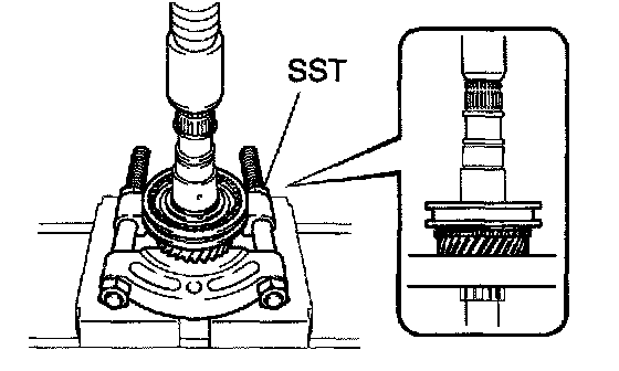 c. Using SST and a press, remove the input shaft rear bearing and 4th gear.