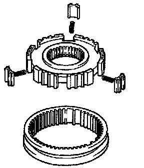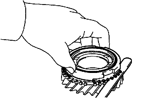 a. Coat the 3rd gear cone with gear oil. Turn the synchronizer outer, ring in one direction while pushing it to the 3rd gear cone. Check that the ring locks.