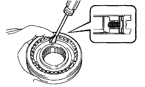 c. Using a screwdriver, install the synchromesh shifting key to the input shaft.