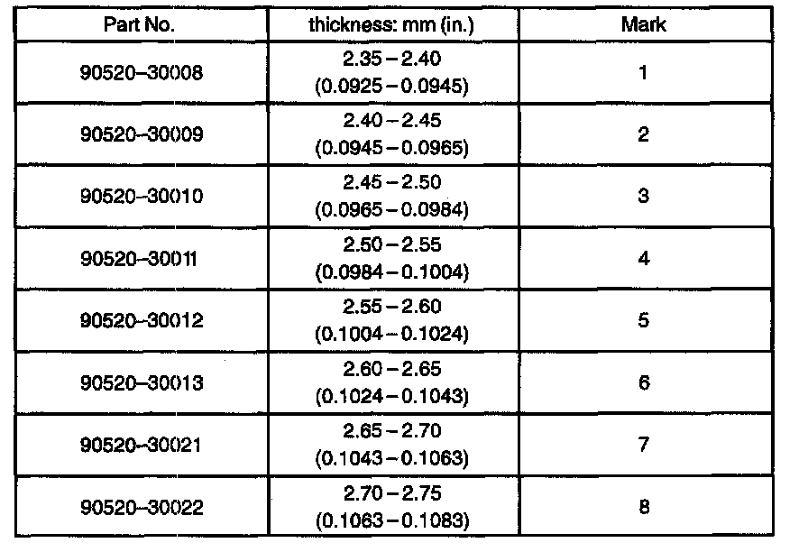Standard clearance: 0.10 - 0.35 mm (0.0039 - 0.0138 inch)