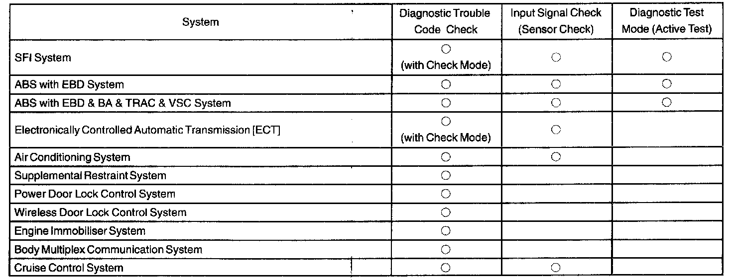 - The diagnostic system in CAMRY has various functions. The first function is the Diagnostic Trouble Code (DTC) Check in which a malfunction in the signal circuits to the ECU is stored in code form in the ECU memory. Another function is the Input Signal Check which checks if the signals from various switches are sent to the ECU correctly. By using these check functions, possible areas of the problem can be narrowed down quickly and troubleshooting can be performed effectively. The diagnostic functions are incorporated in the following systems in CAMRY.