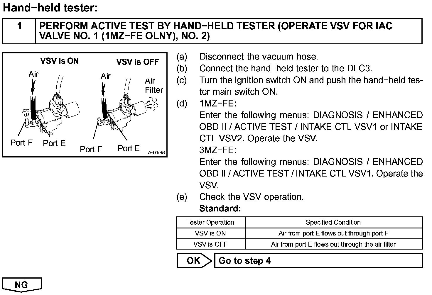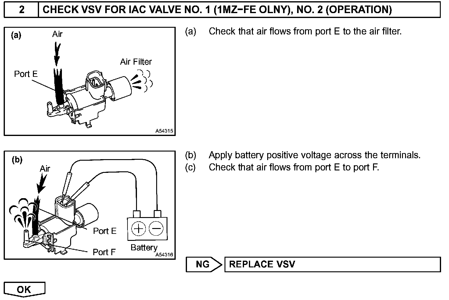 - The 1MZ-FE engine has 2 VSVs (No.1 and No.2)