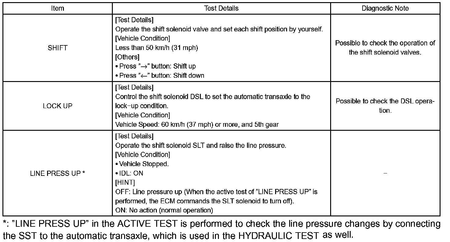 HINT: The pressure values in ACTIVE TEST and HYDRAULIC TEST are different from each other.