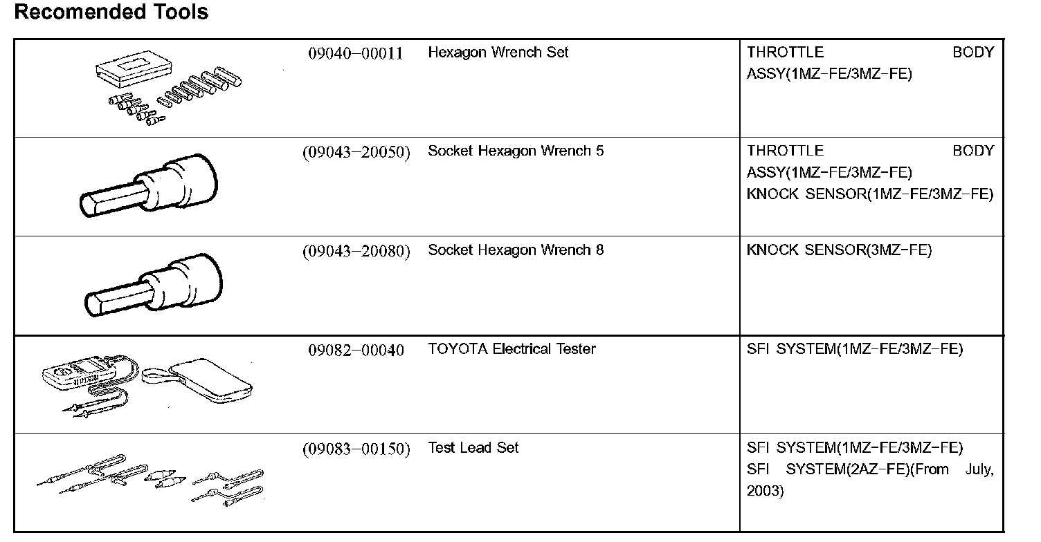 Engine Control System-Recommended Tools: