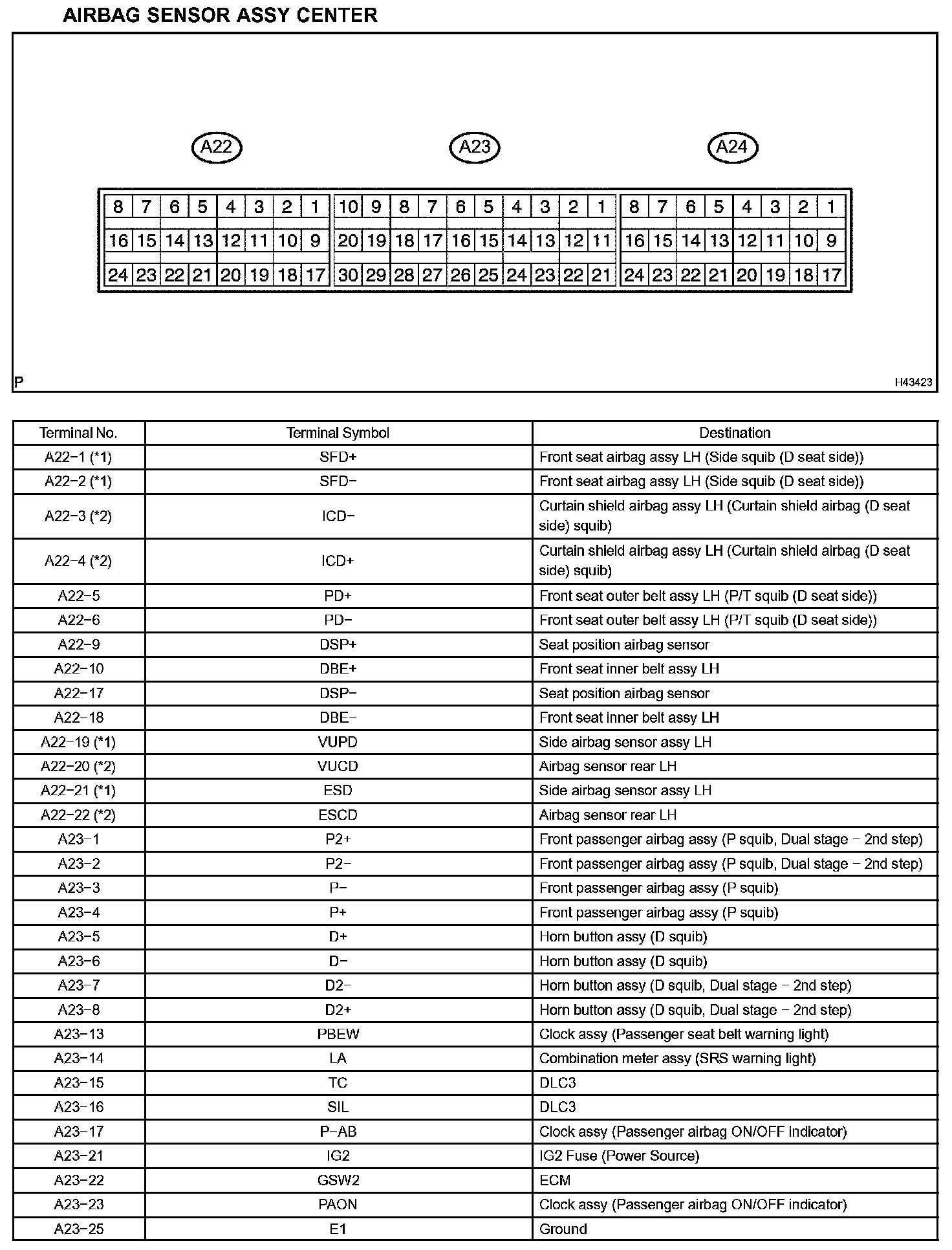 Terminals Of Control Module/Pinouts - Airbag Sensor Assy Center (Part 1):