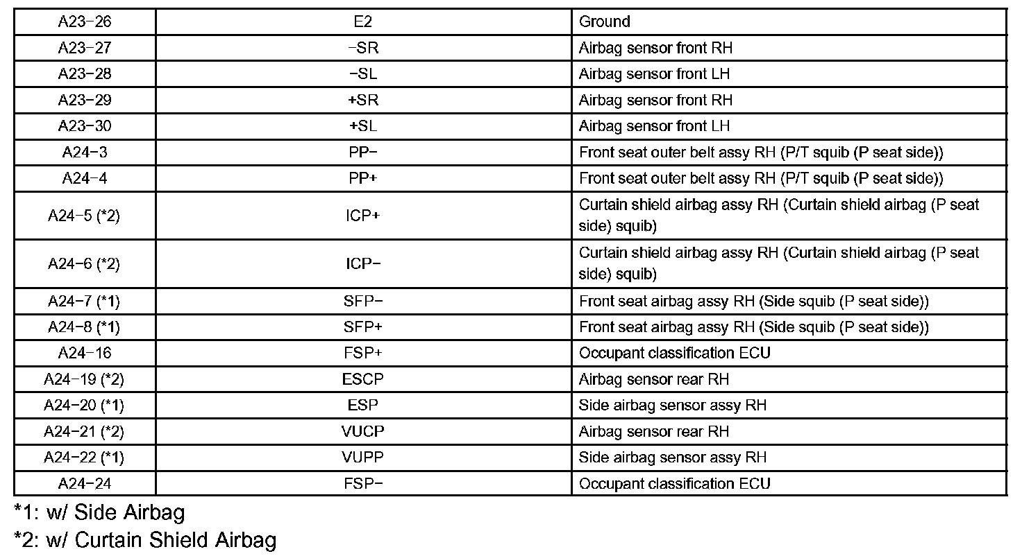 Terminals Of Control Module/Pinouts - Occupant Classification ECU (W/o Power Seat) (Part 2):