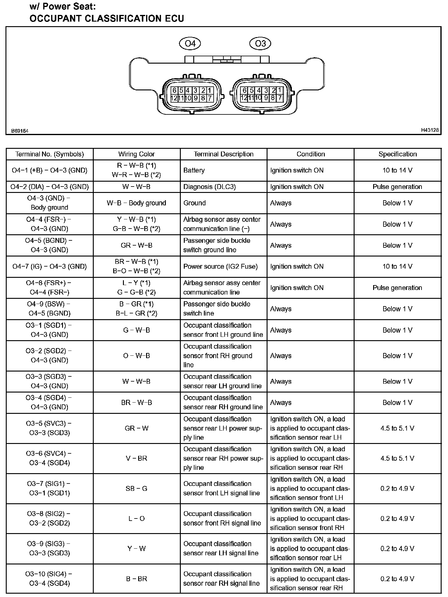 Terminals Of Control Module/Pinouts - Occupant Classification ECU (W/ Power Seat) (Part 1):