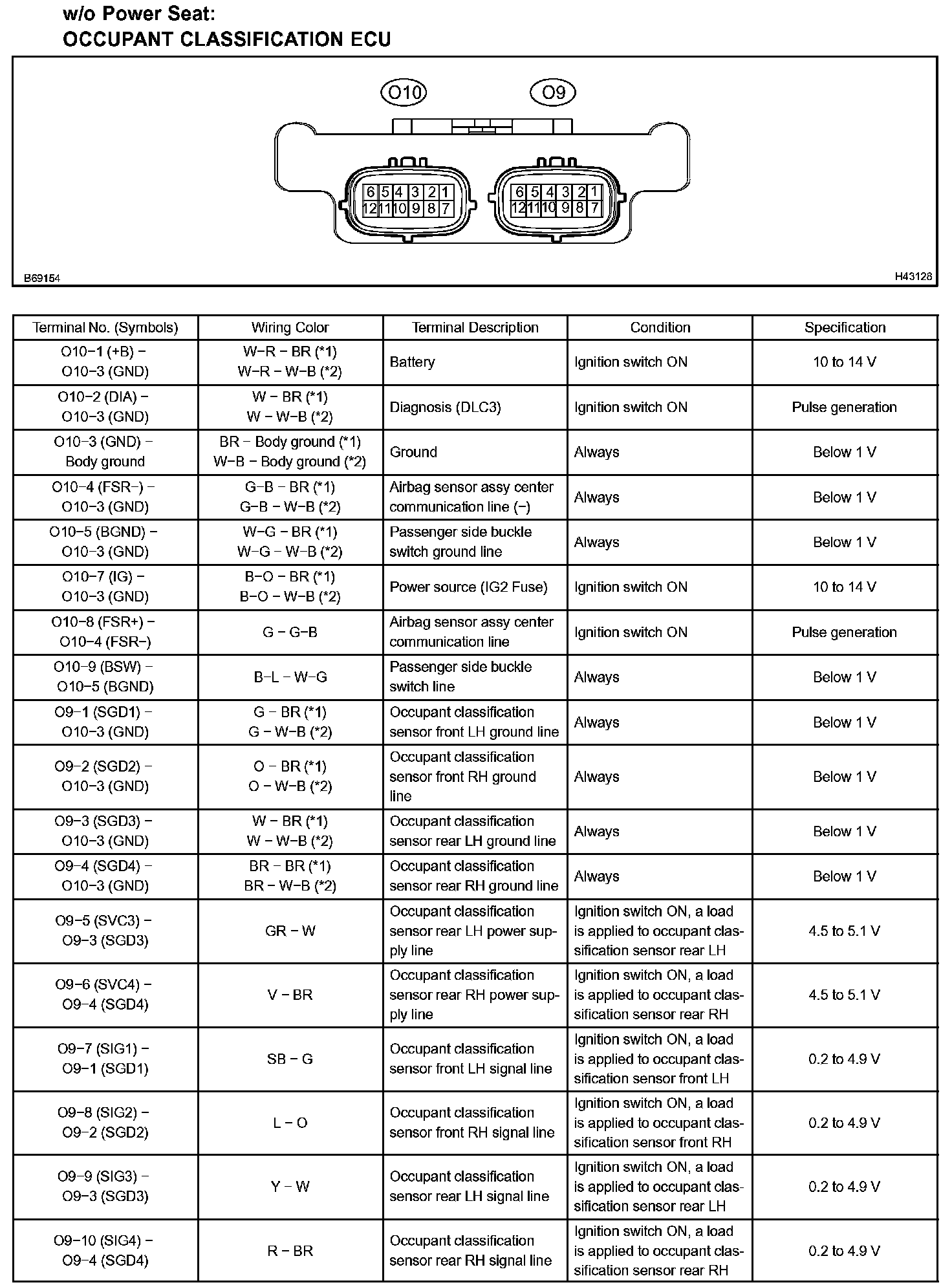 Terminals Of Control Module/Pinouts - Occupant Classification ECU (W/o Power Seat) (Part 1):