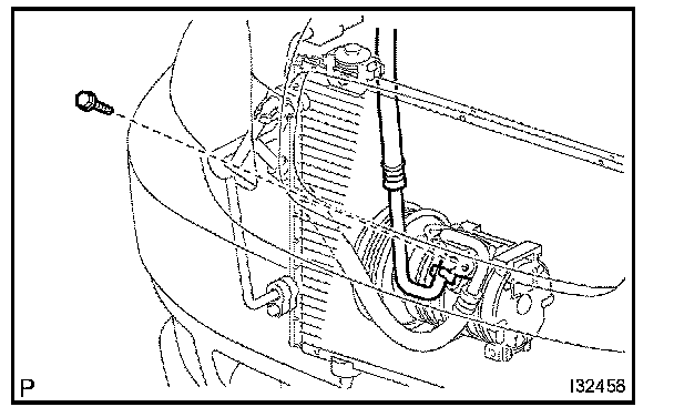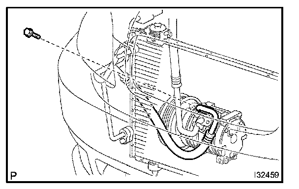 d. Install the discharge hose sub-assembly to the compressor and magnetic clutch with the bolt.