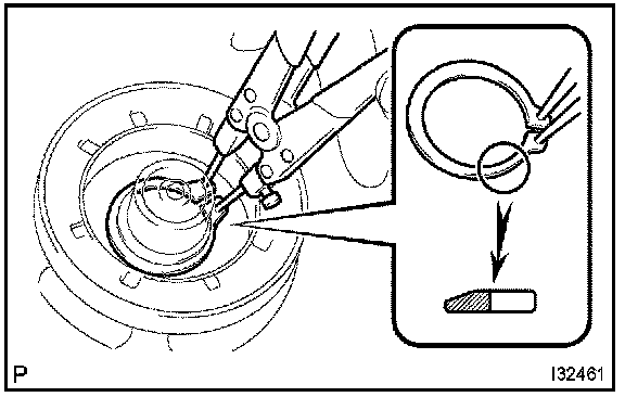b. Using a snap ring expander, install a new snap ring with the chamfered side facing up.