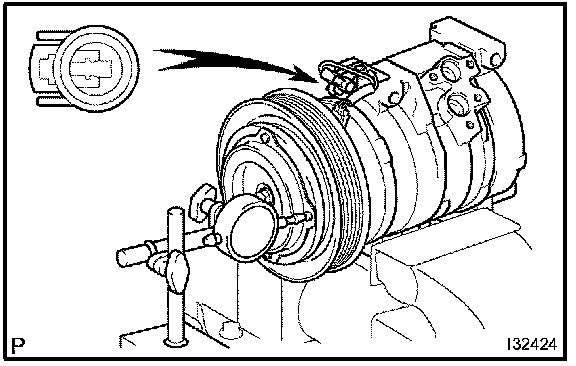 b. Sufficiently apply compressor oil to the new O-ring and fit surface of the compressor and magnetic clutch.
