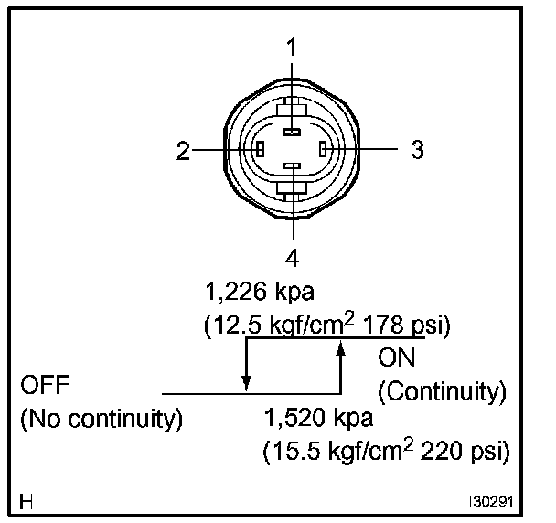 3. Check continuity between terminals when refrigerant pressure is changed, as shown in the illustration.
