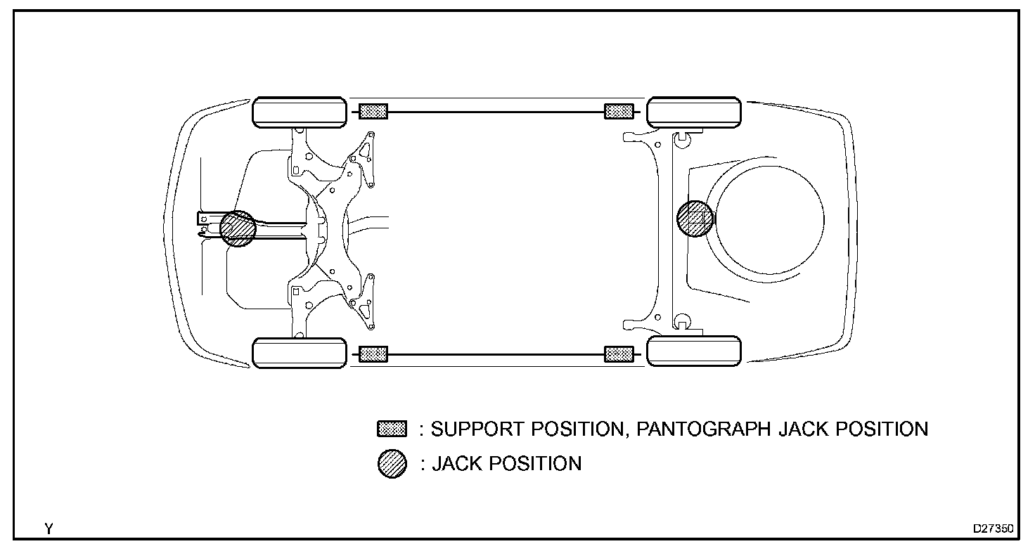 d. Set the vehicle on the lift as level as possible. Then match the groove of the lift to the rigid rack support location.