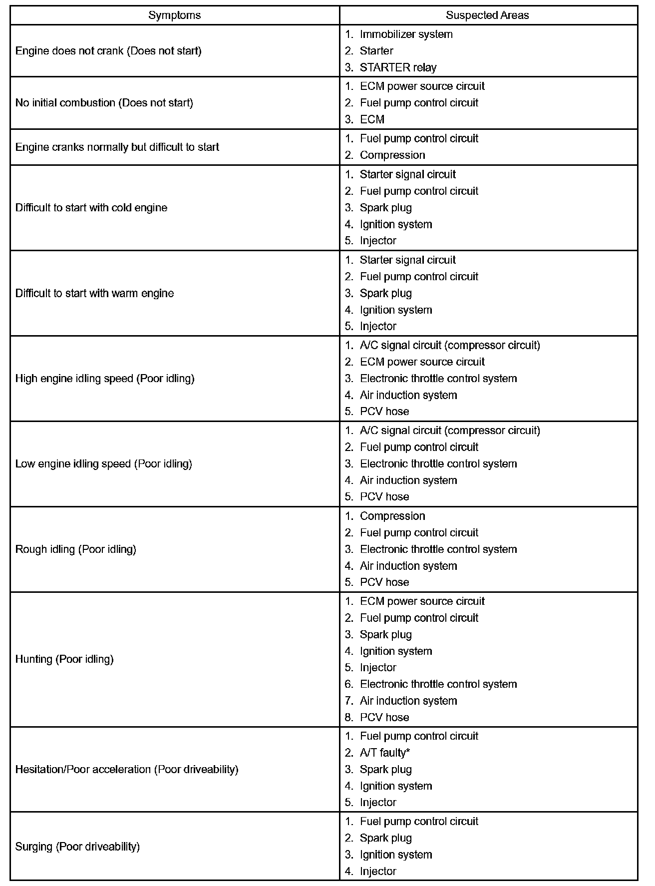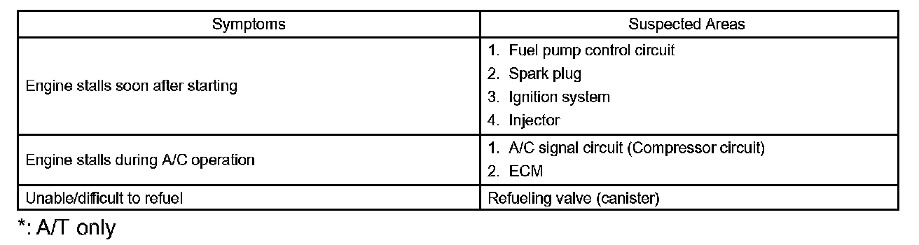HINT: When a malfunction is not confirmed by a DTC (Diagnostic Trouble Code) check and the cause of problem cannot be identified through a basic inspection, troubleshoot according to the priority order indicated in the table.