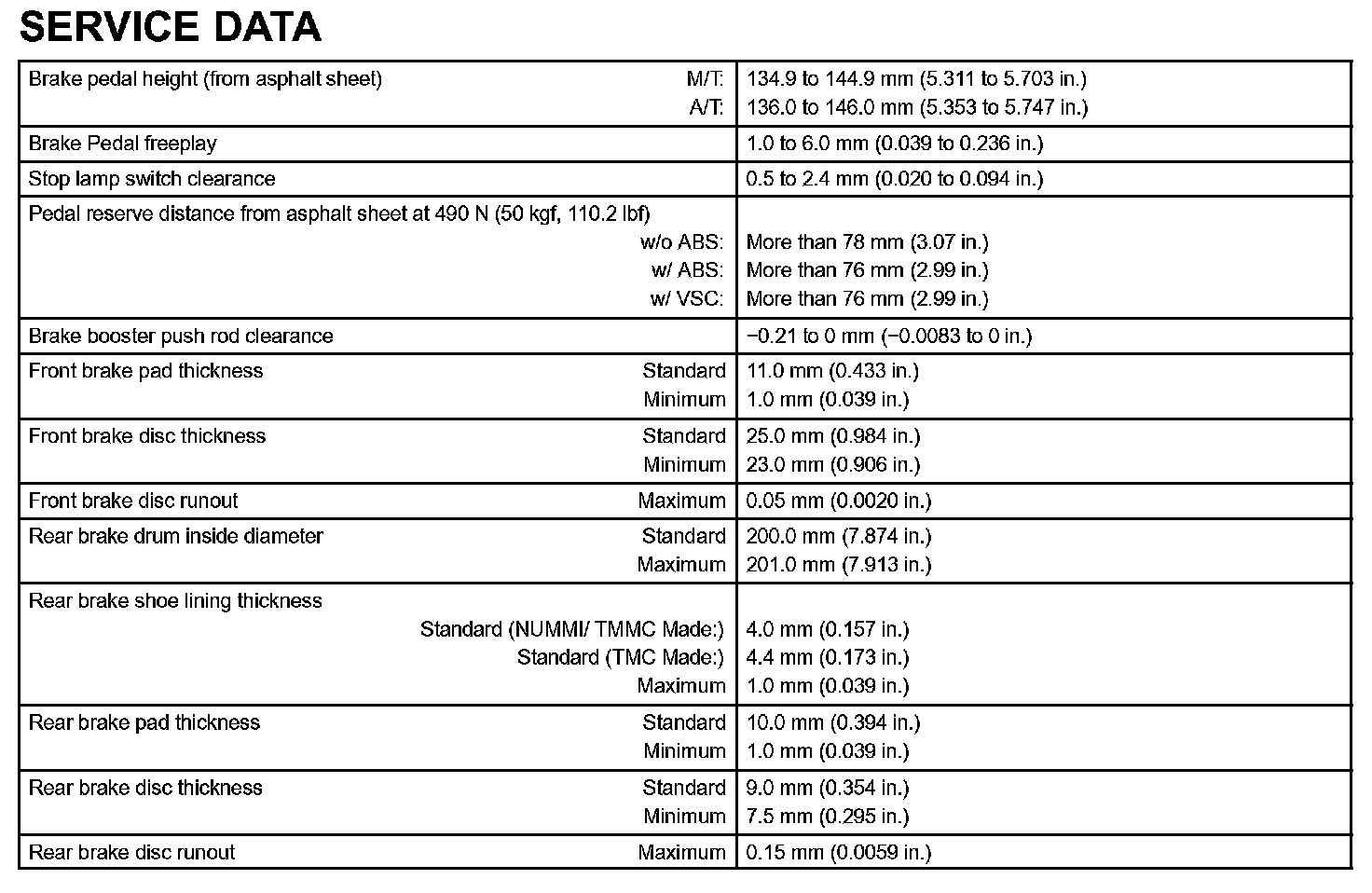 Brake-Service Data: