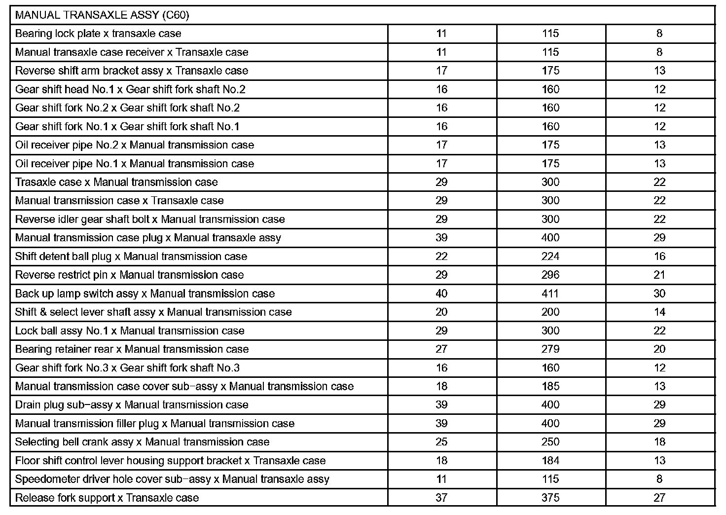 Manual Transmission / Transaxle-Torque Specification: