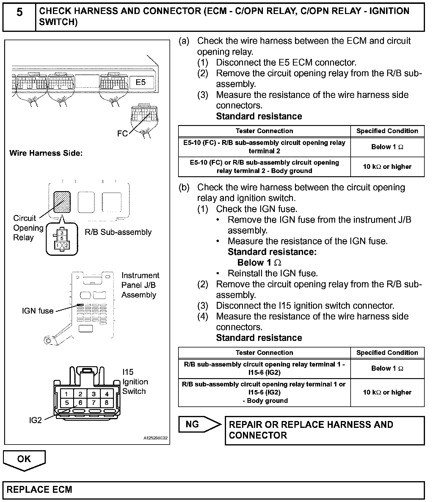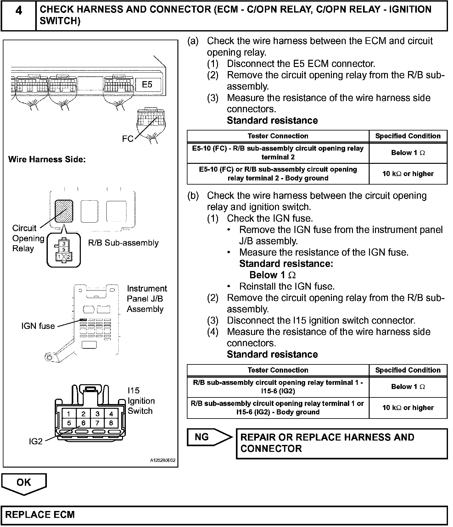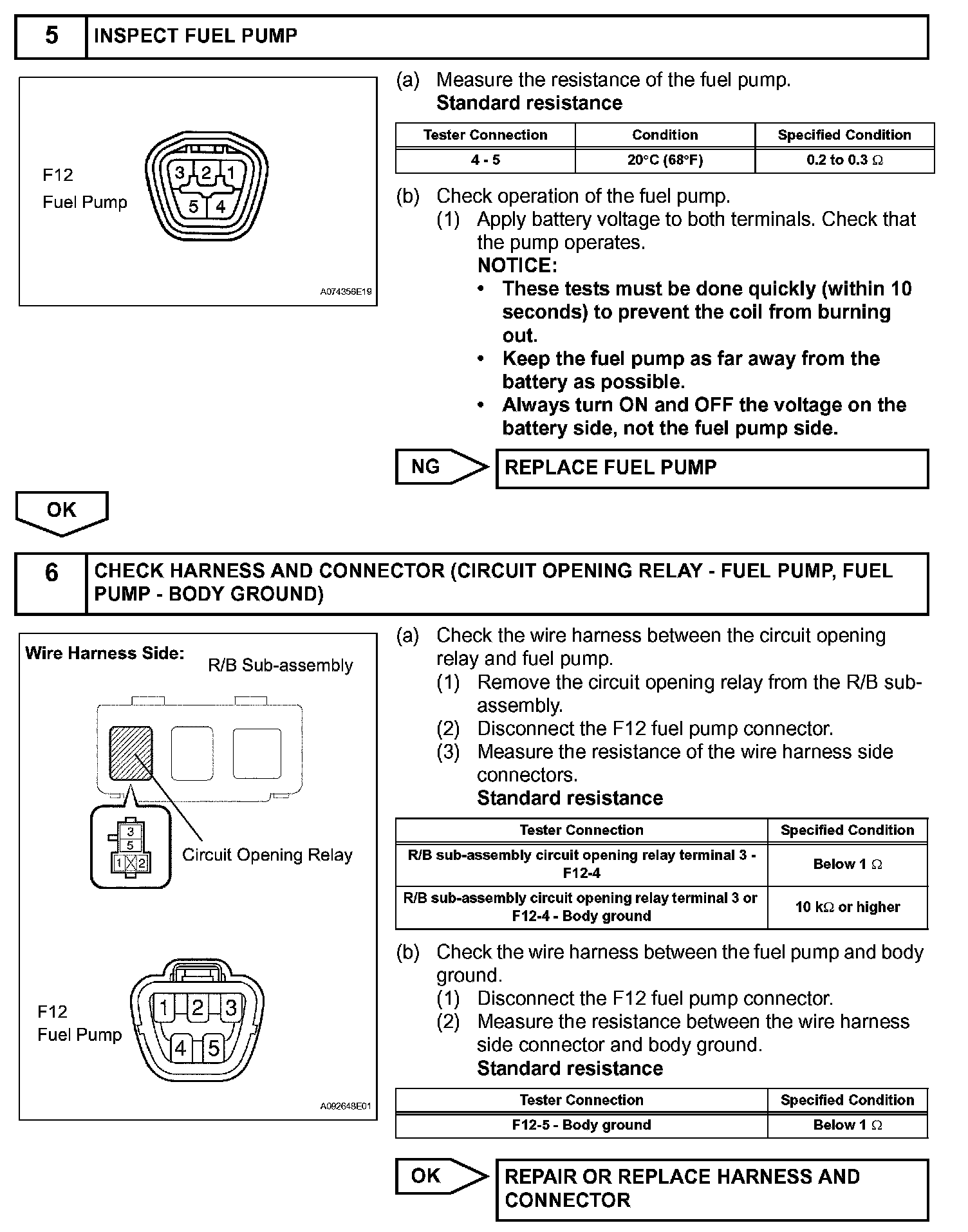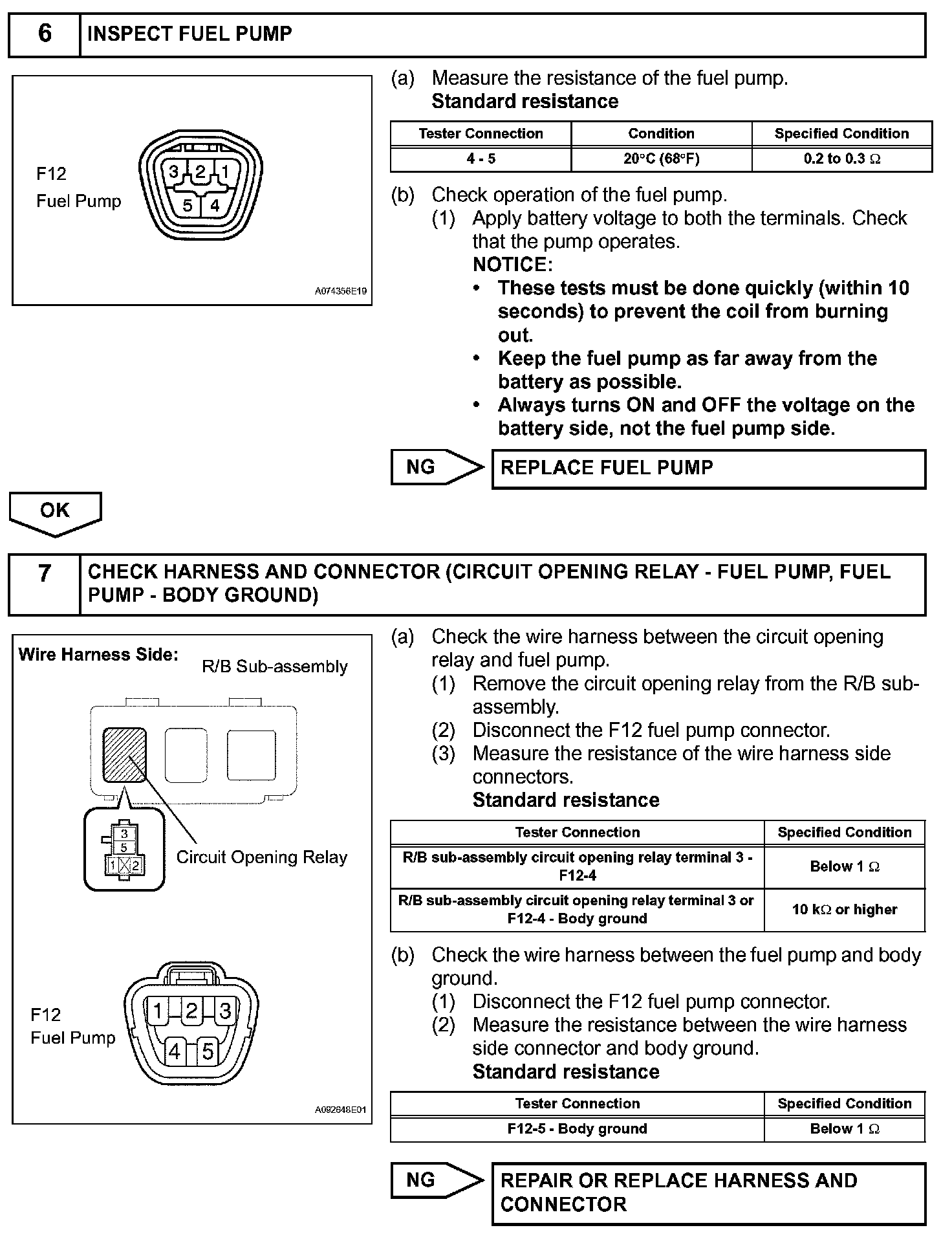 While the NE signal is generated and the engine is running, the ECM keeps Tr ON (Circuit Opening relay ON) and the fuel pump also keeps operating.