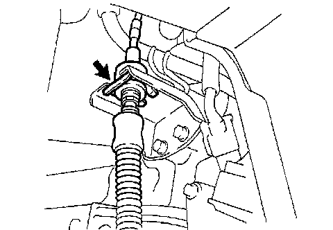c. Remove the clip and disconnect the control cable from the control cable bracket.