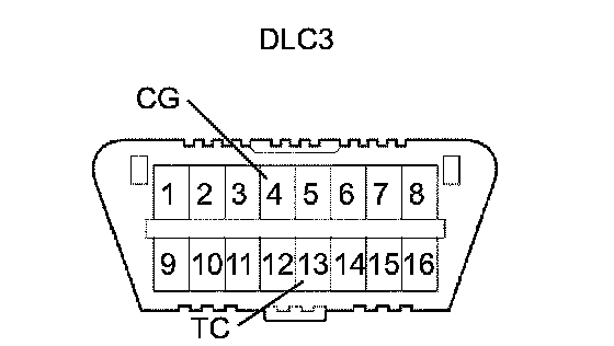 (1) Using SST, connect terminals 13 (TC) and 4 (CG) of the DLC3.