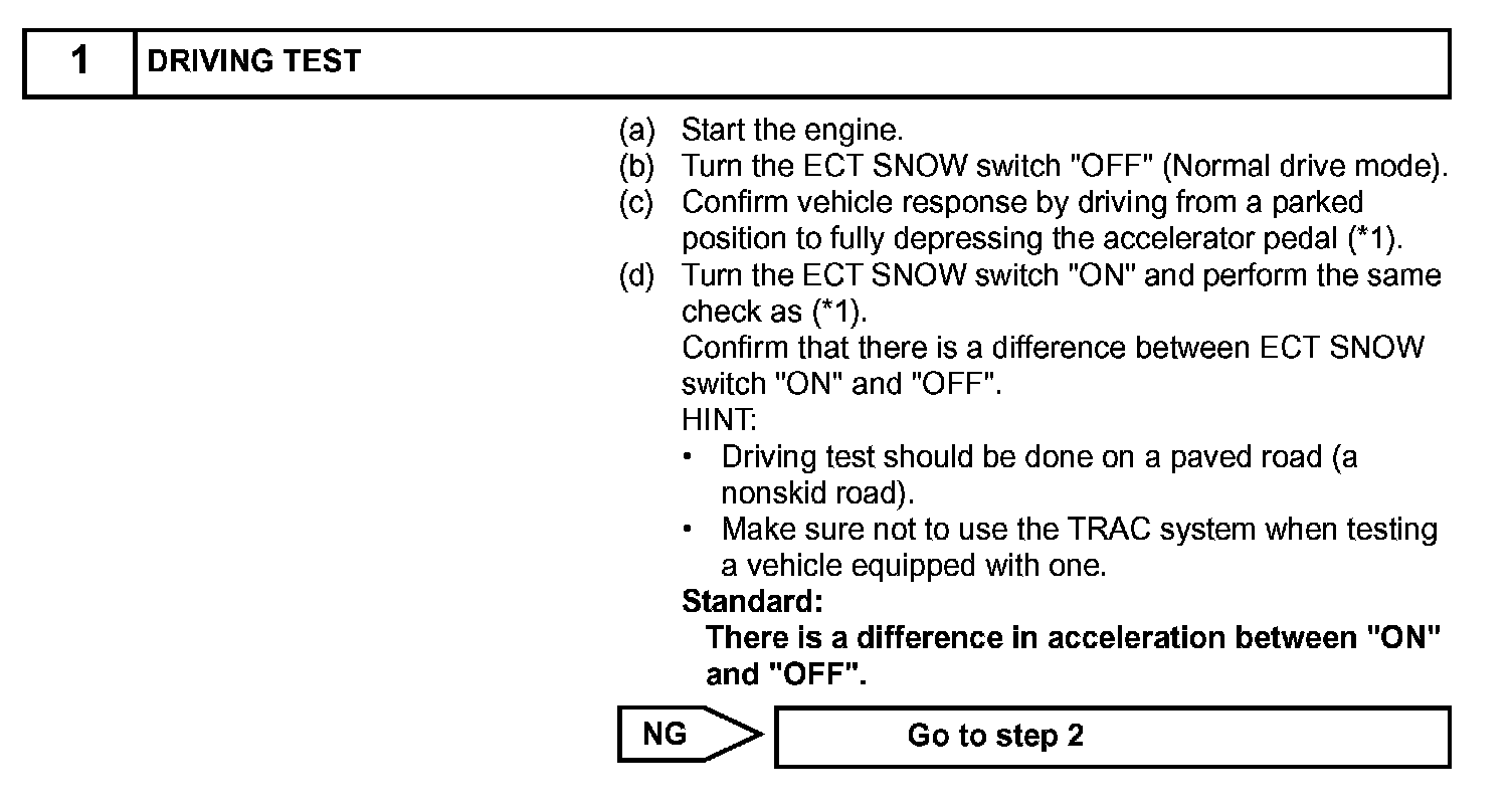 ECT SNOW is the system that operates the throttle motor to control engine output to reduce skidding of the driving wheels, guarantee takeoff acceleration, driving straightness and turning stability.