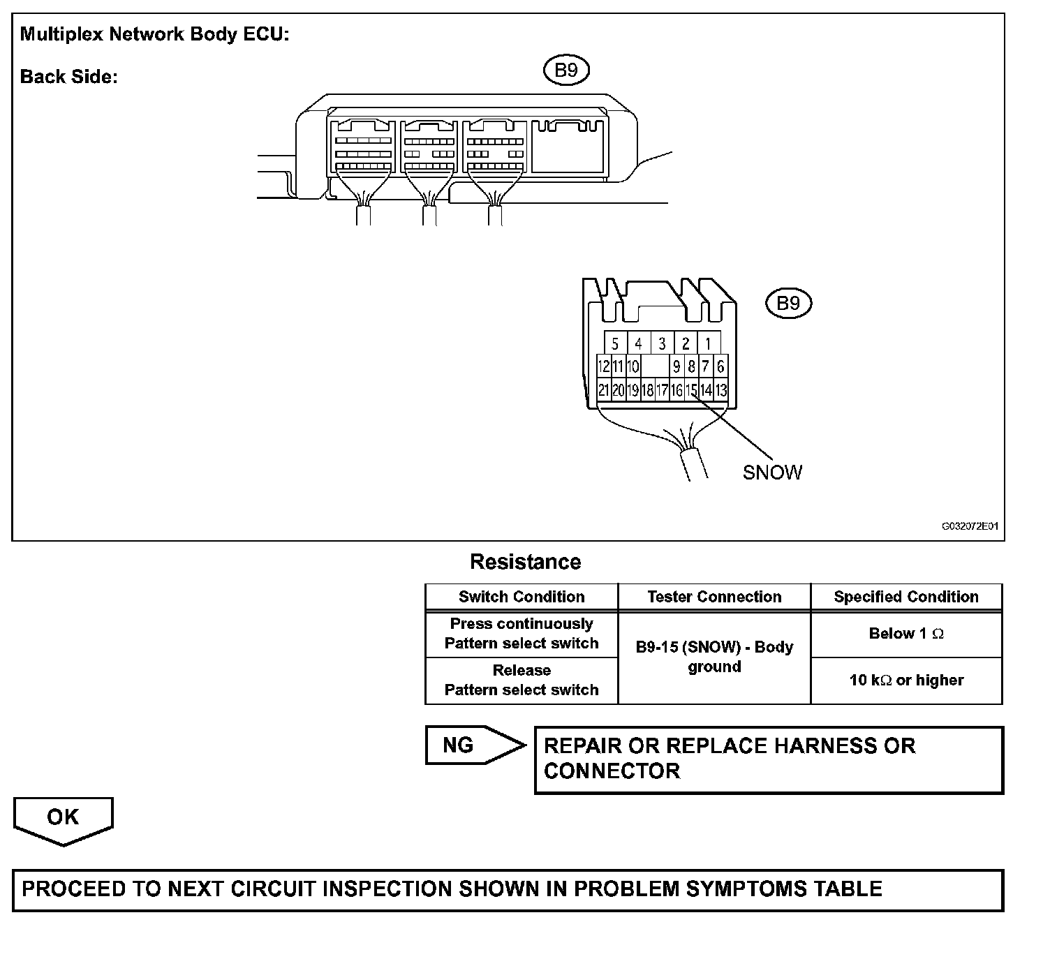 Multiplex network body ECU receives pattern select switch information, and sends it through the multiplex communication system to the ECM.