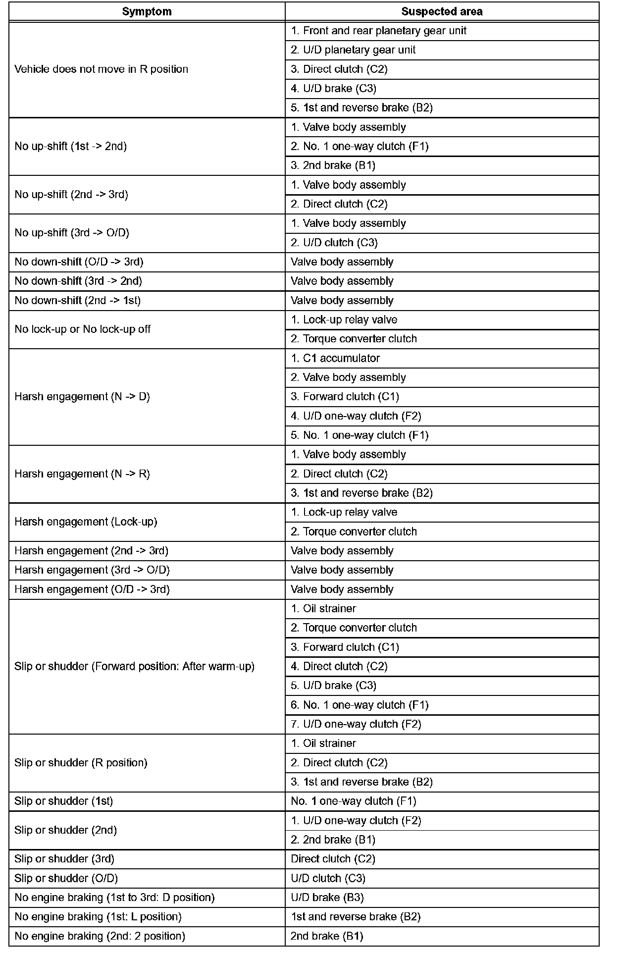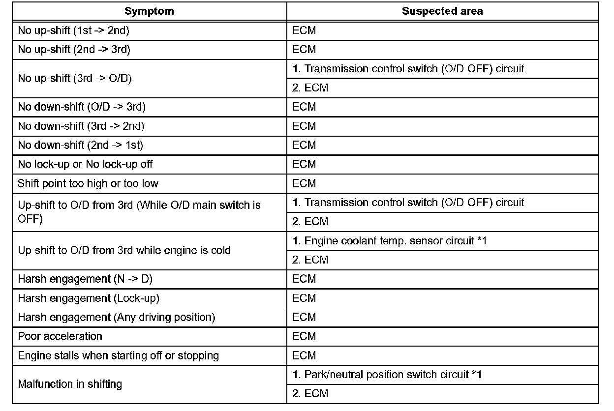 Refer to the table when the trouble cause is considered to be electrical the instruction Proceed to next circuit inspection shown on matrix chart is given in the flow chart of each circuit, proceed to the circuit with the next highest number in the table to continue the check. If the trouble still occurs even though there are no abnormalities in any of the other circuits, check and replace the ECM.