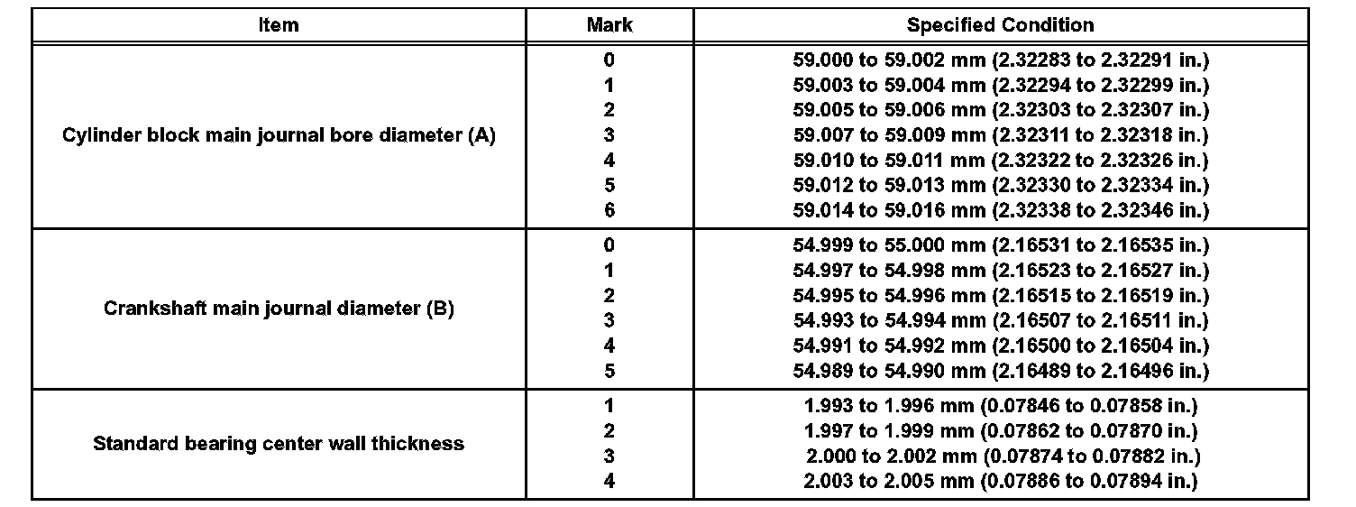 Main Journal Diameter 54.988 to 55.000 mm (2.16488 to 2.16535 inch)