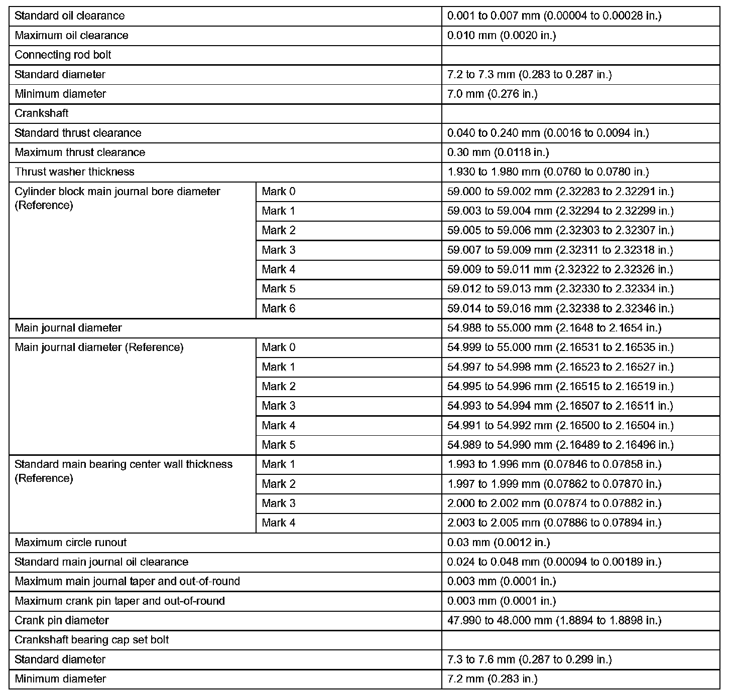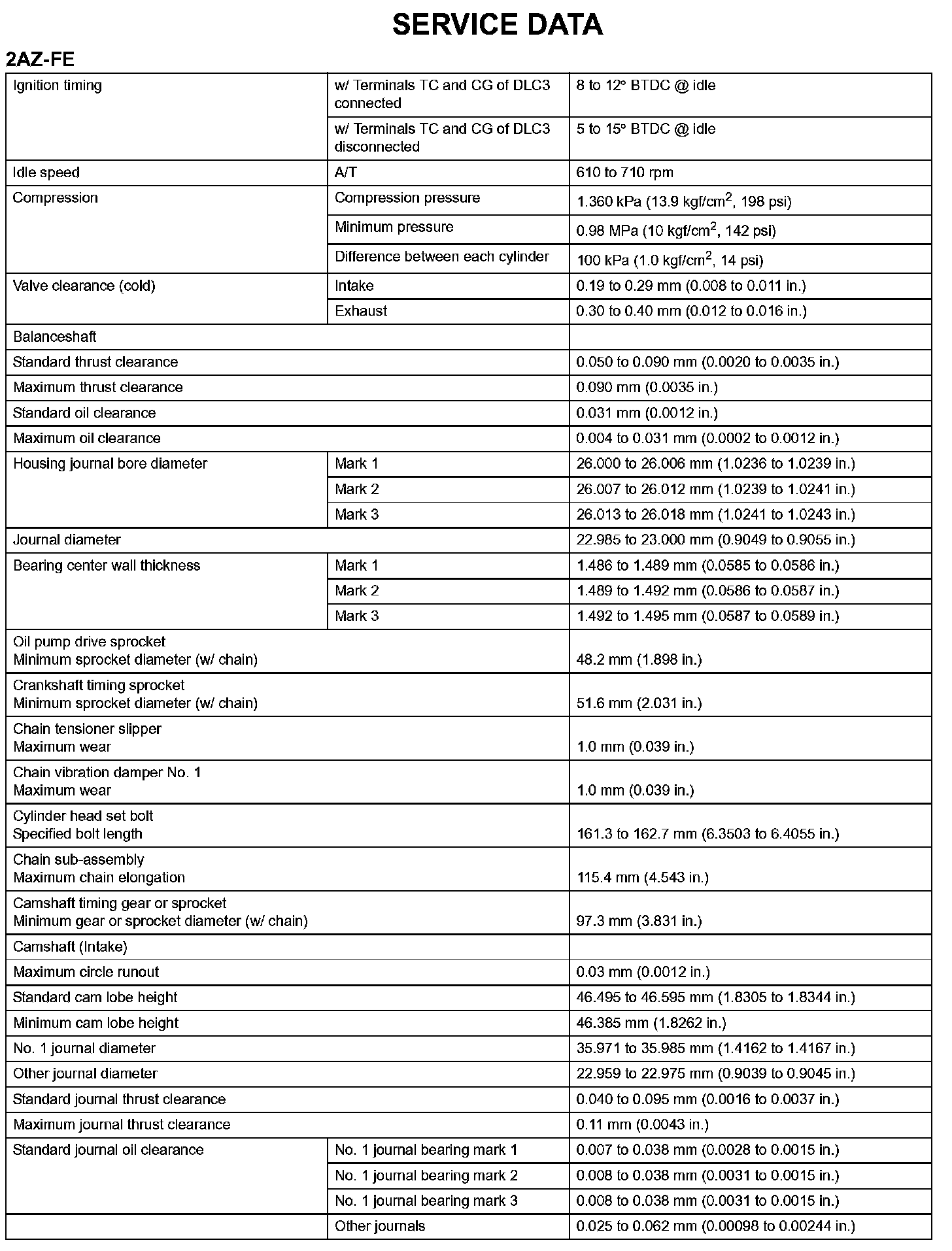 Engine Mechanical-Service Data (Part 1):