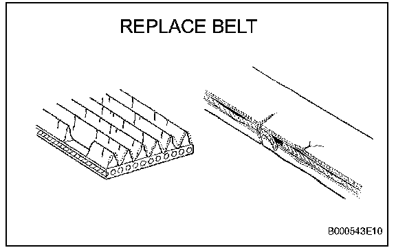 HINT: Replace the drive belt if the following defects are found: