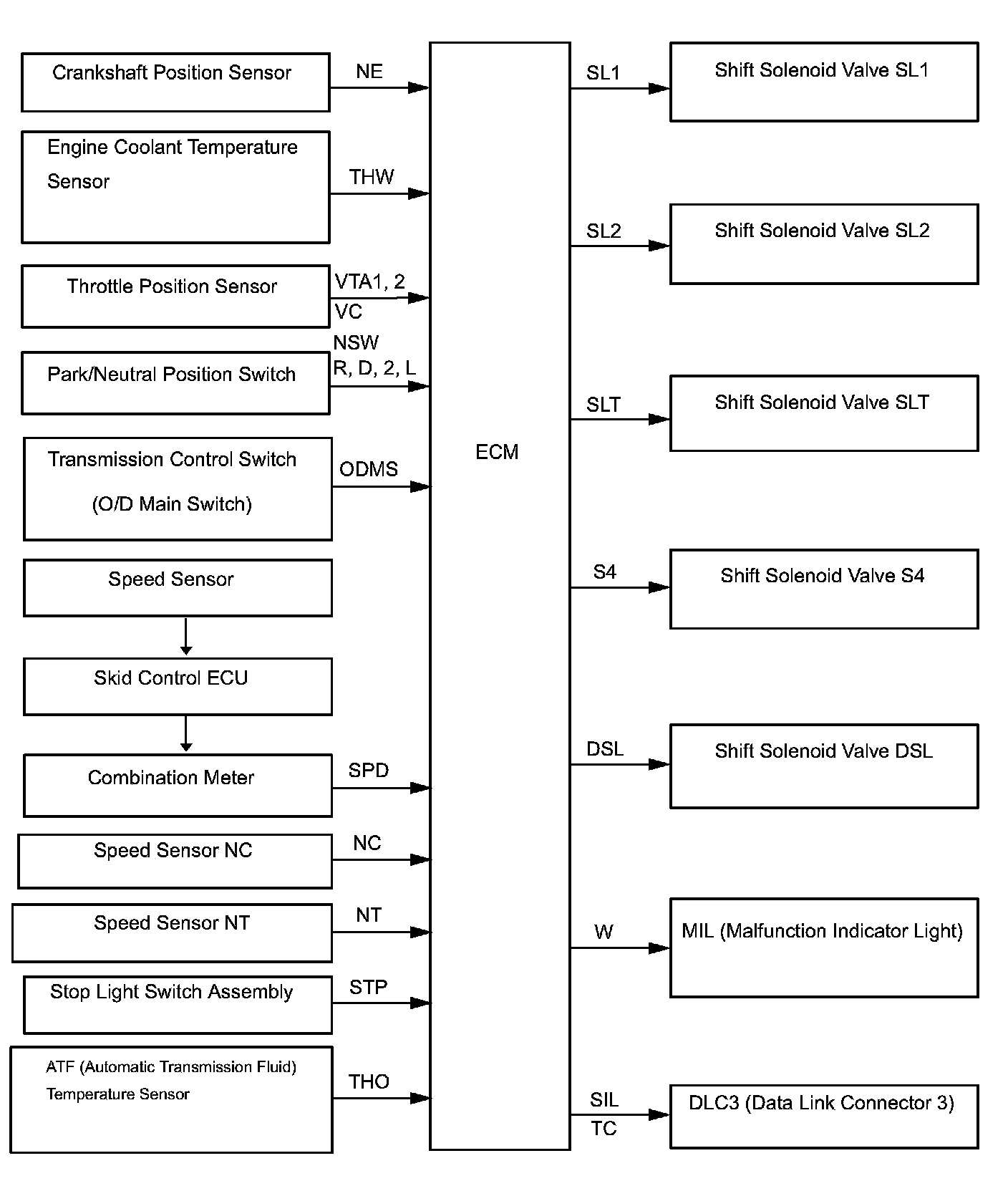 a. The ECT (Electronic controlled automatic transmission/transaxle) is an automatic transmission/transaxle that electronically controls shift timing using the ECM. The ECM detects electrical signals that indicate engine and driving conditions, and controls the shift point, based on driver habits and road conditions. As a result, fuel efficiency and power transmission performance are improved.