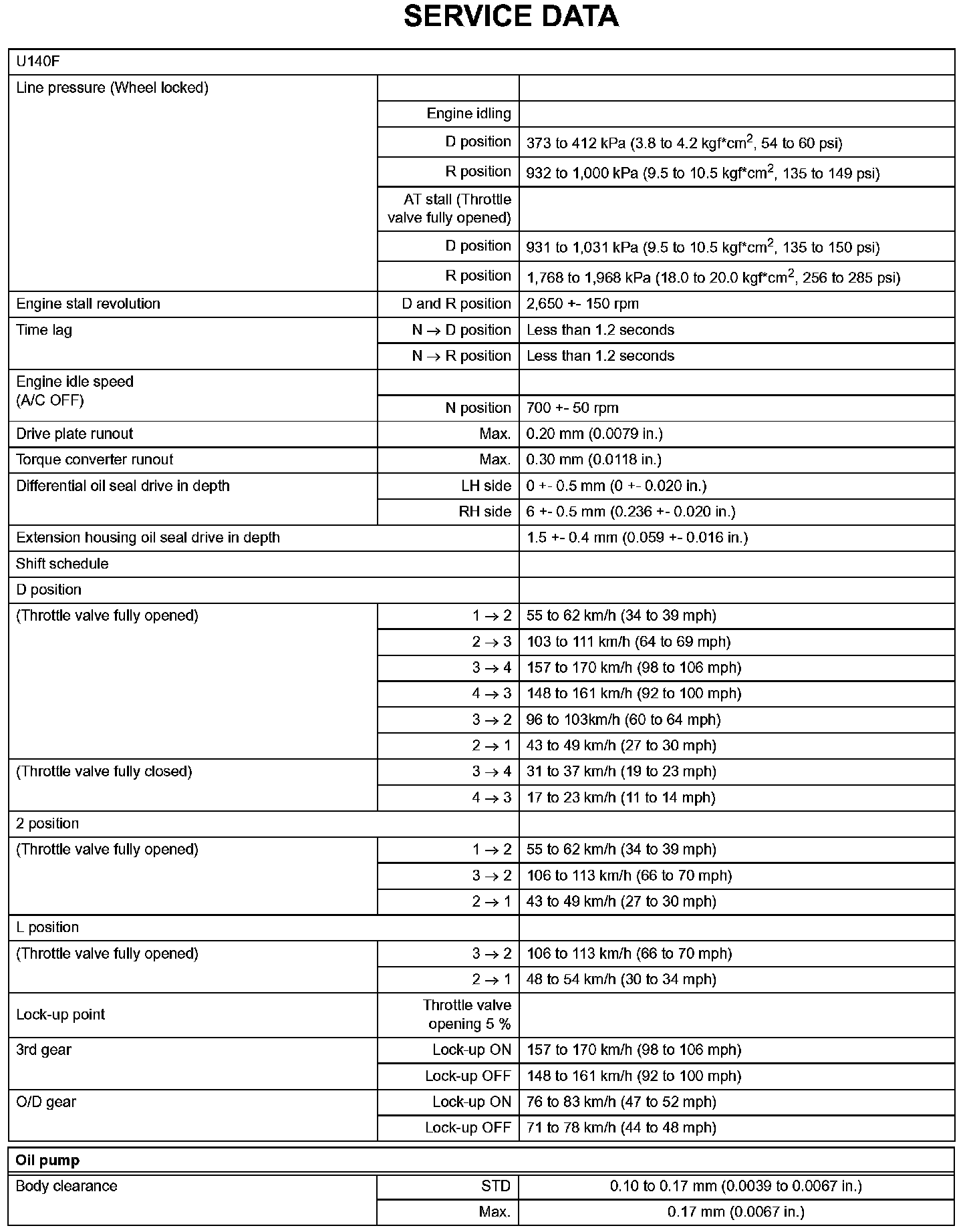 Automatic Transaxle-Service Data (Part 1):