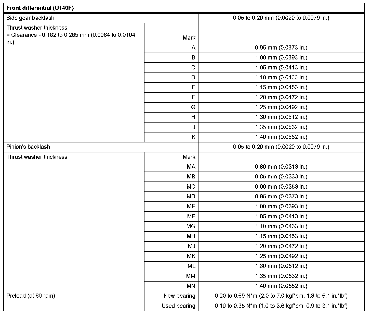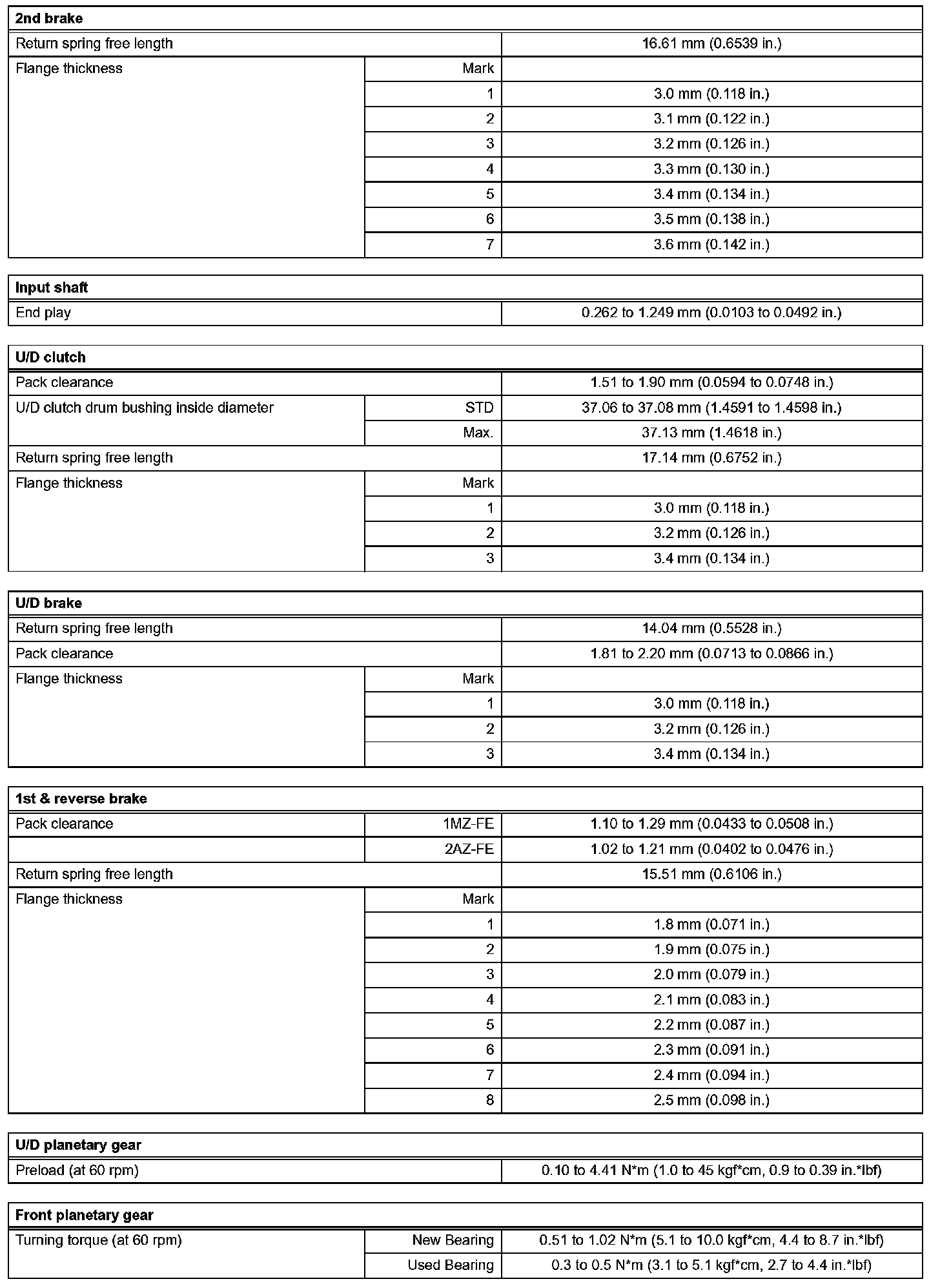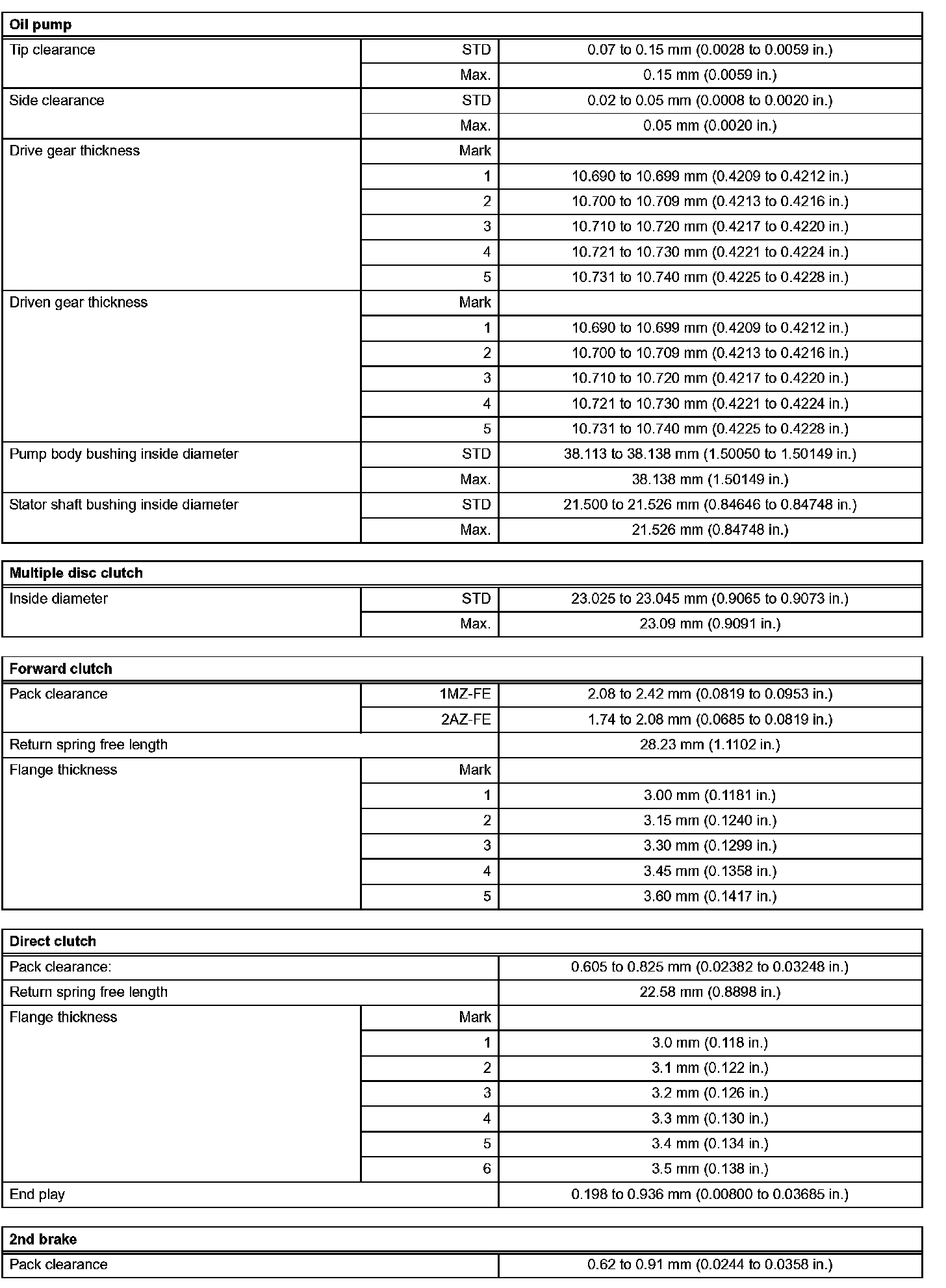 Automatic Transaxle-Service Data (Part 2):