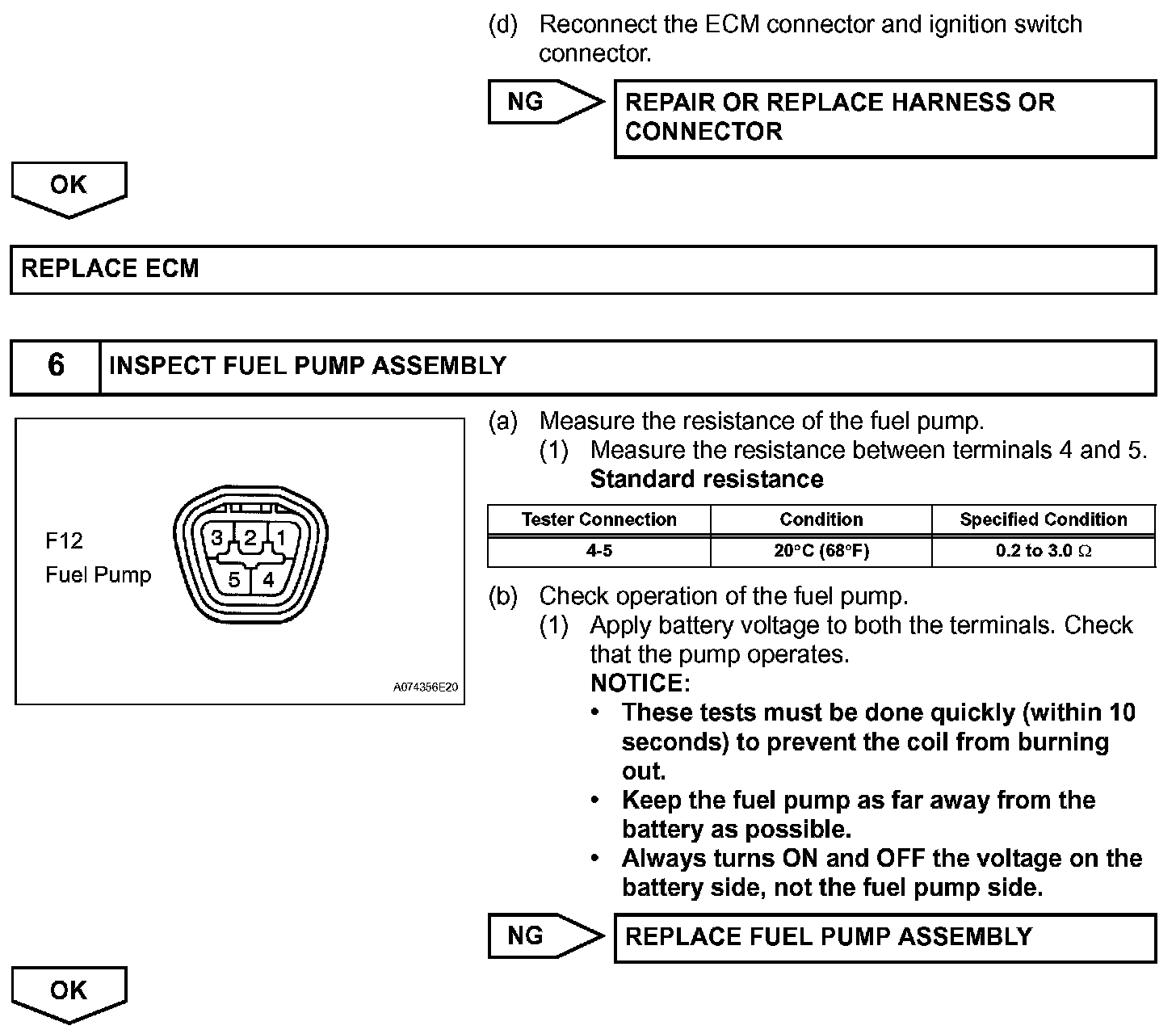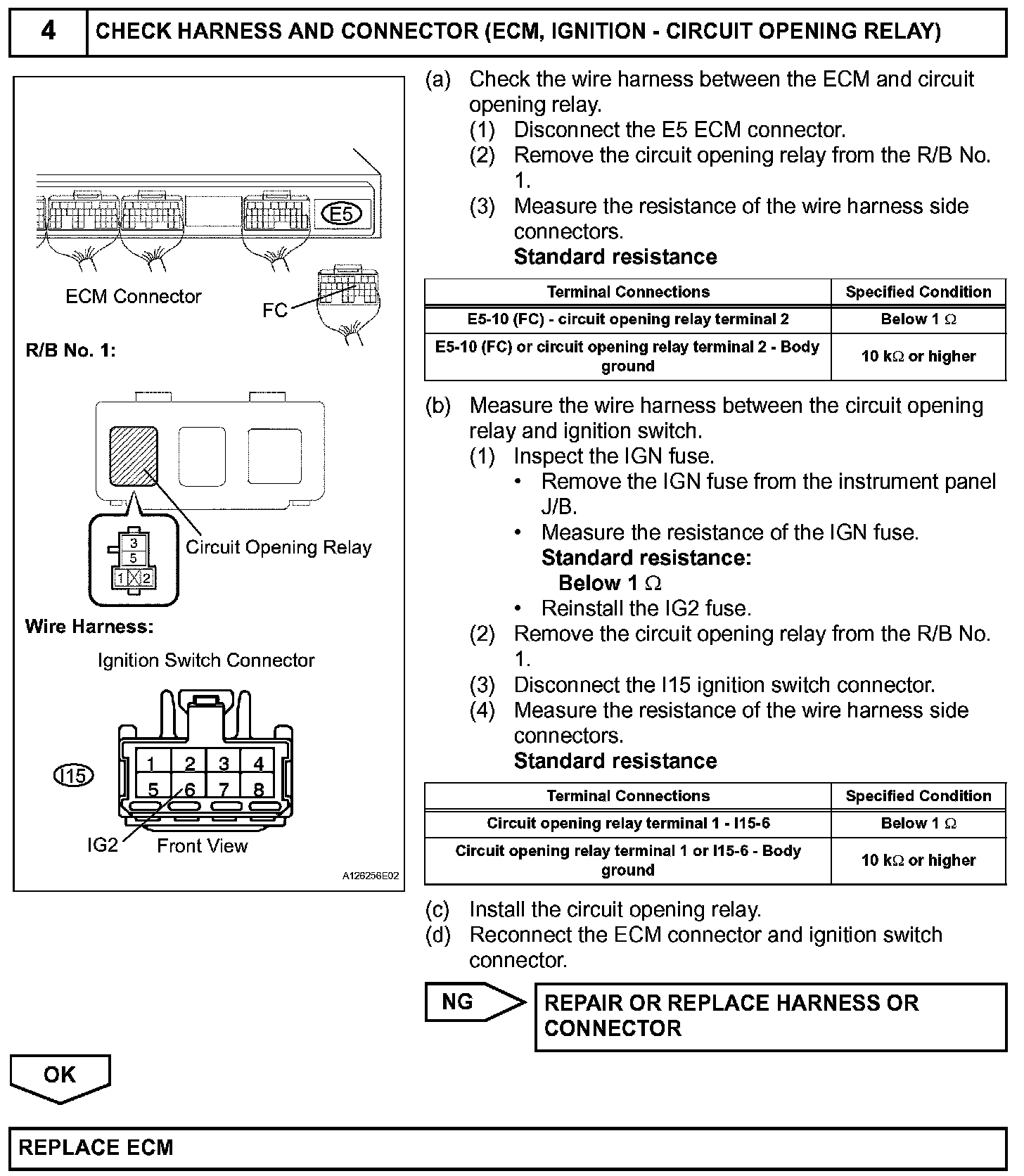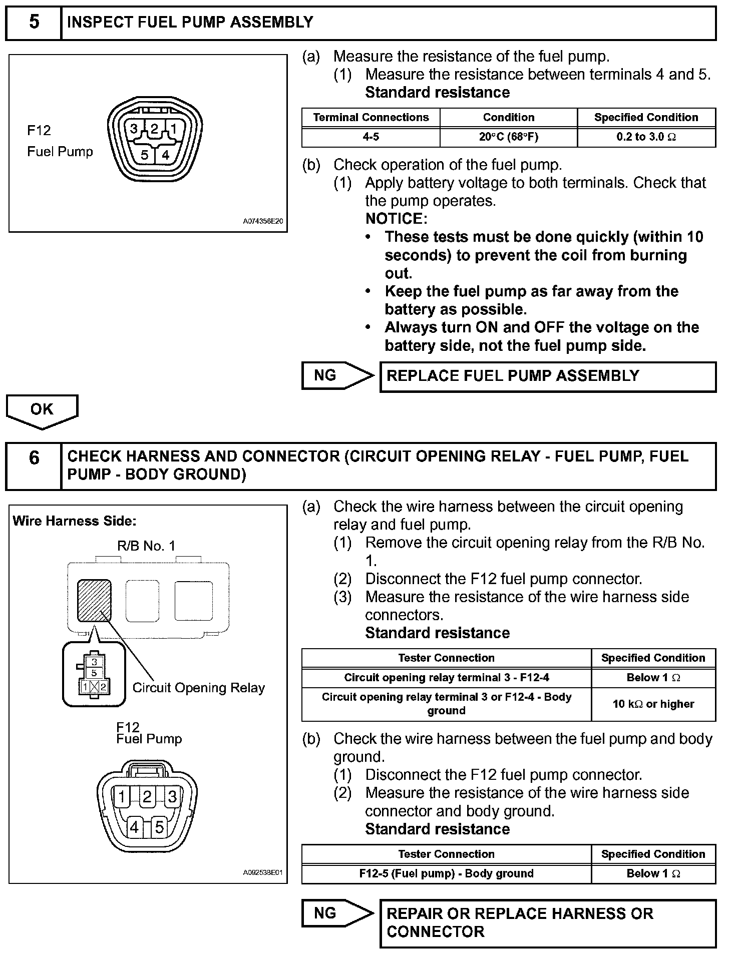 While the NE signal is generated and the engine is running, the ECM keeps Tr ON (Circuit opening relay ON) and the fuel pump also keeps operating.