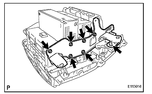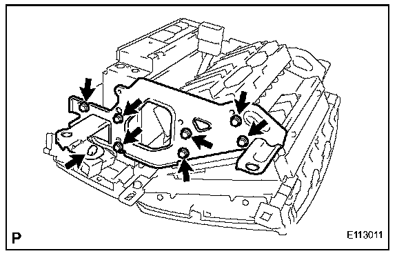 b. Remove the 6 bolts and radio receiver bracket LH.